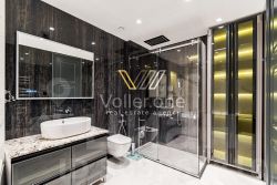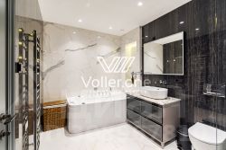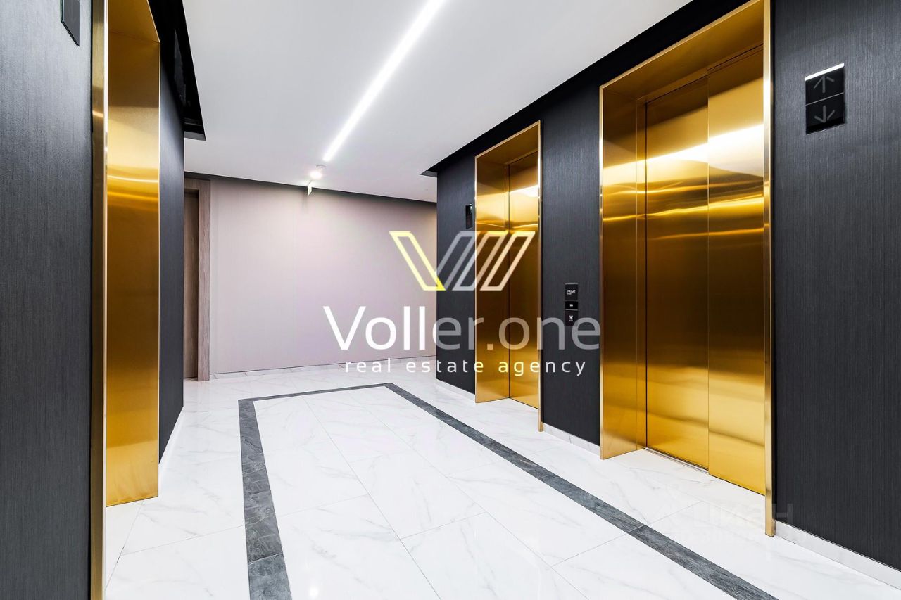 Гостиная совмещена со столовой, изолированная спальня, с санузлом и оборудованной гардеробной, гостевой санузел, встроенные шкафы, постирочная.