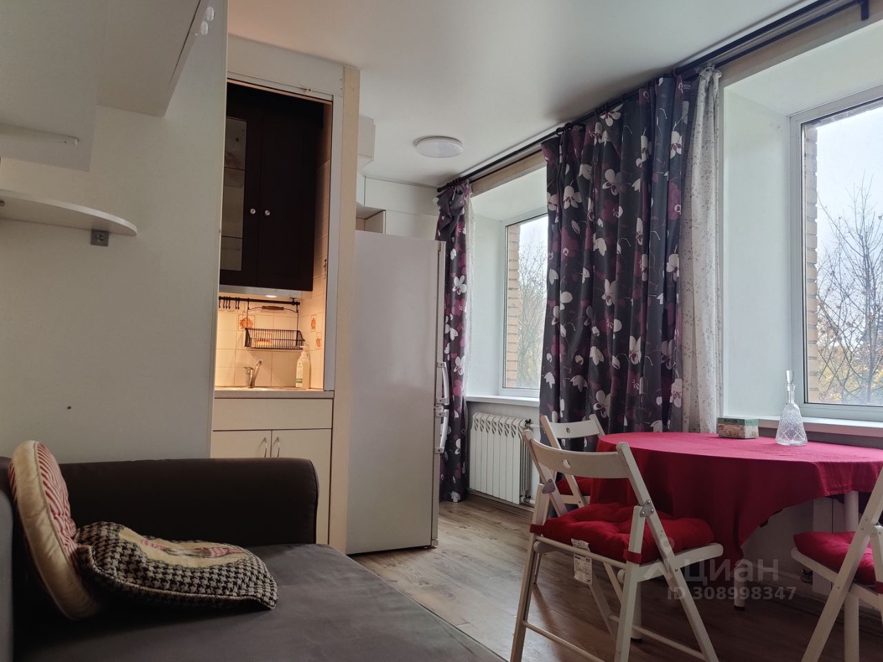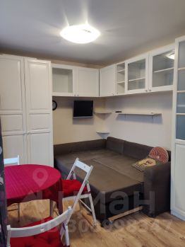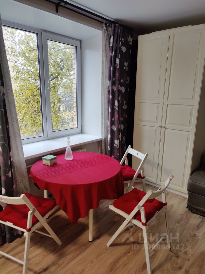 Студия с двумя окнами. Уютная, в тихом дворе. Из окое видно много деревьев, частные дома.