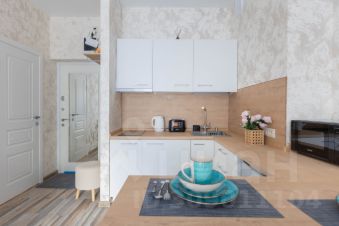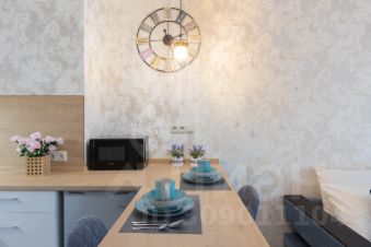 Студия с дизайнерским ремонтом. В квартире могут разместиться одновременно от 1 до 3 человек. Спальных мест 2+1.