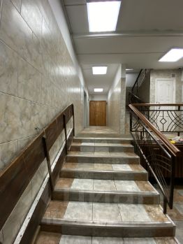Дом находится в хорошем состоянии и оснащён необходимыми удобствами: пассажирский и грузовой лифты, пандус мусоропровод. Чистый подъезд, консьержка.