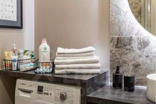 Также вас ждет все необходимое для вашего безупречного внешнего вида: гладильная доска, утюг, зеркало в полный рост.