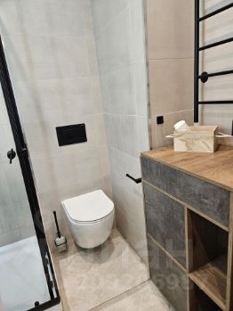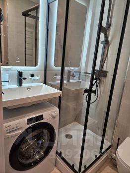Есть вся необходимая мебель как в комнате, так и на кухне. Из техники — кондиционер, холодильник, телевизор и стиральная машина. Санузел совмещённый, оборудован душевой кабиной. Окна выходят во двор, поэтому в квартире всегда тихо и спокойно.