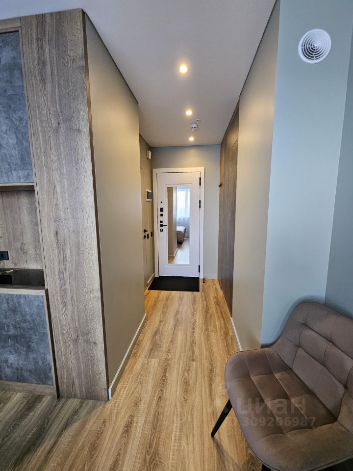 Сдаётся уютная новая студия на Ленинском проспекте, 158. Апартаменты площадью 18 кв. м расположены на 16-ом этаже 22-этажного дома.