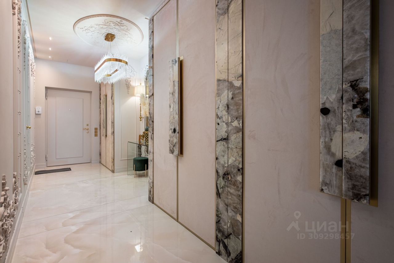 Планировка продумана до мелочей. Организована просторная гостевая и кухонная зона, мастер-спальня с будуаром, гардеробной и ванной комнатой. В прихожей гостевой санузел и гардероб. Высота потолков 3,1 метра. В производстве дверей участвовала петербургская фабрика, которая известна своими реставрационными работами в Эрмитаже.