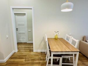 Уютная светлая однокомнатная квартира в новом доме. Потолки 3,2 метра. Новый ремонт, никто еще не жил. Вся мебель и техника новая: холодильник, стиральная машина, посудомоечная машина кондиционер. Кровать с ортопедическим матрасом АСКОНА. В санузле душевая кабина с тропическим душем. В квартире есть все необходимое - заезжай и живи.