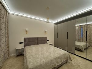 КВАРТИРА С МАШИНОМЕСТОМ В ПАРКИНГЕ!!! Сдается впервые. В квартире выполнен дизайнерский ремонт по индивидуальному проекту с использованием современных экологических строительных материалов. Паркетный пол в спальнях, на кухне и в ванной - кафельные полы с подогревом. Мебель новая, изготовлена из высококачественного сырья. Встроенная кухня со всей необходимой бытовой техникой: плита, духовой шкаф, холодильник, посудомоечная машина, стиральная машина, СВЧ, электрочайник.