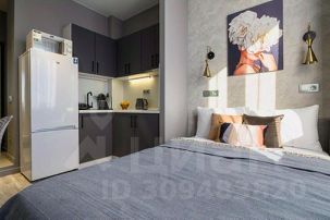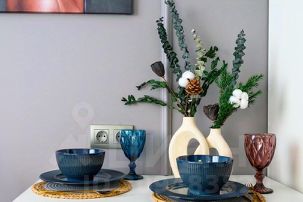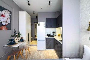 - Кухня с холодильником, плитой, микроволновкой, чайником и посудой