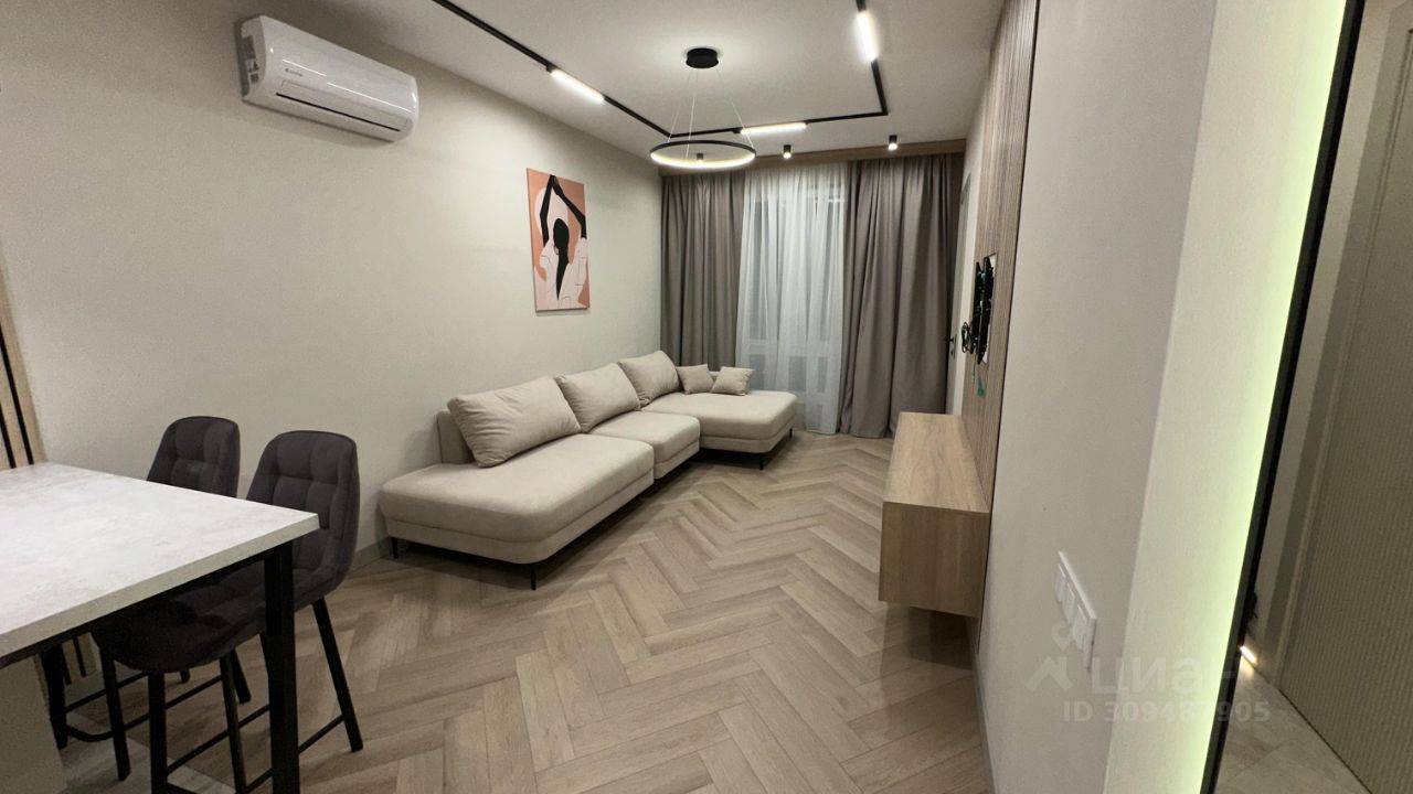 В квартире есть все необходимое для комфортного проживания. установлена современная мебель, а также вся необходимая техника: холодильник, посудомоечная машина и кондиционер. Ванная комната оборудована ванной, здесь же установлена стиральная машина с функцией сушки .