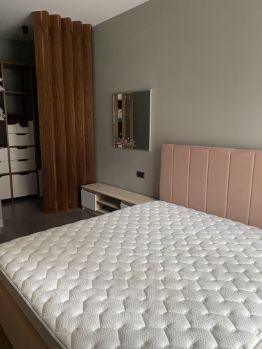 Квартира выполнена с дизайнерским ремонтом и полностью готова к заселению. В кухне и гостиной установлена вся необходимая мебель. В распоряжении арендаторов — современная техника: кондиционер, холодильник, стиральная машина, посудомоечная машина и телевизор. Санузел совмещённый. Также предусмотрены две удобные гардеробные для хранения вещей.