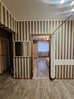 В квартире сделан косметический ремонт, заведен интернет. Кухня оборудована необходимой мебелью и техникой, в комнате кровать, шкаф, тумба.