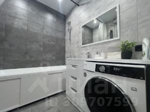 Ванная комната оборудована стиральной машиной с сушкой для белья, два в одном.