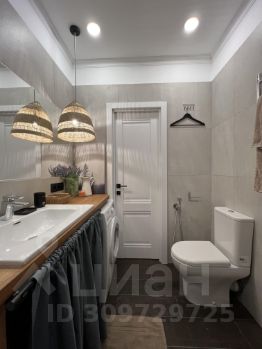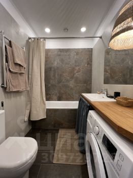 В санузле имеется полноразмерная ванная, также там располагается стиральная машина. Они оснащены водяными, пол уложен керамо-гранитными плитами с регулируемым электроподогревом.