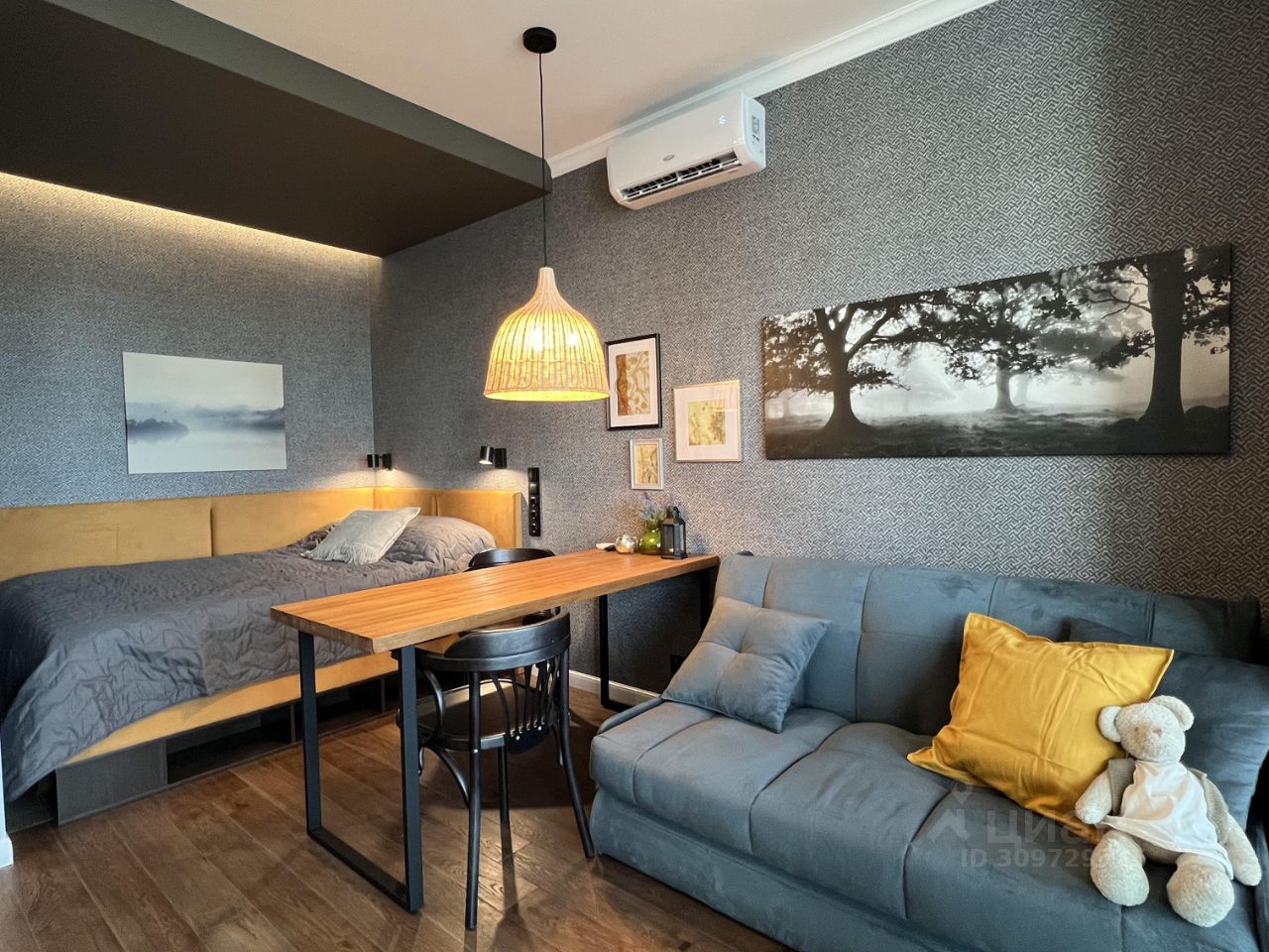 Видовая студия с дизайнерским ремонтом.