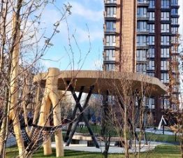 Закрытая территория с зеленым art-двором с зонами отдыха, охрана, зона коворкинга, кофейня, лобби.