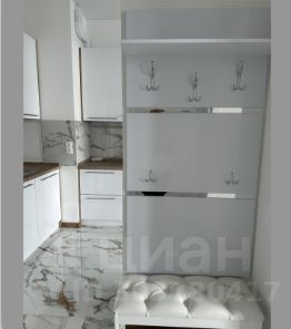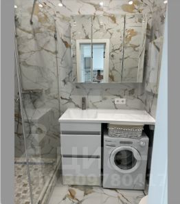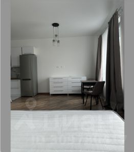 Полностью готова для комфортного проживания. В комнате и на кухне есть вся необходимая мебель. Из техники: кондиционер, холодильник, посудомоечная и стиральная машины. Ванная комната оборудована душевой кабиной.