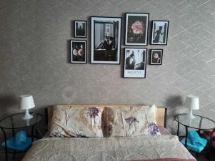 Вся необходимая мебель ибытовая техника (2-хспальная кровать, раскладное кресло, телевизор, холодильник, стиральная машинка-автомат, плита, фен, утюг, гладильная доска, электрический чайник), все необходимые для жизни мелочи (тапочки исредства личной гигиены, мыло, шампунь ит. д.). Предоставляется постельное бельё, полотенце, посуда. Интернет wi-fi. Имеется балкон.