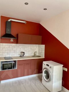 - На кухне: холодильник, варочная панель, вытяжка, СВЧ-печь, чайник.