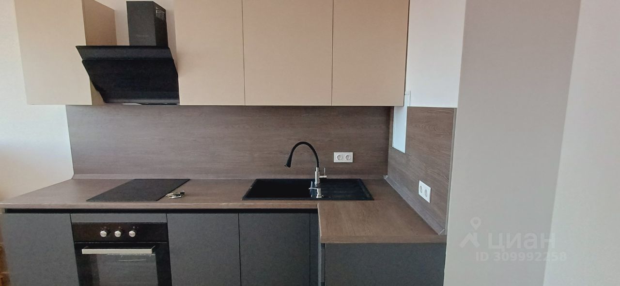 Мебель, холодильник, стиральная машинка, вытяжка, варочная поверхность, духовой шкаф.