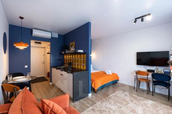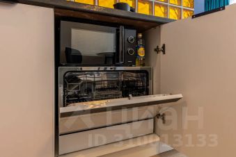 Вместимость студии до 4-х человек. Полностью оборудованная кухня с варочной панелью, микроволновкой и посудомоечной машиной позволит готовить любимые блюда.