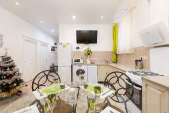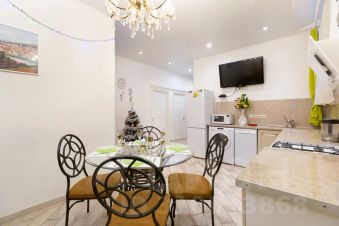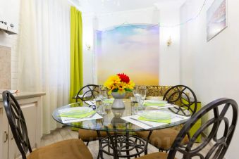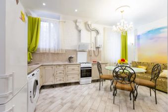 В квартире могут разместится 6-8 человек. Есть 3 изолированные комнаты, в двух комнатах двуспальные кровати, в третьей 2 односпальные кровати. Кухня-студия объединена с гостиной.