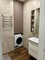 • Удобства: кондиционеры в каждой комнате, теплые полы в санузлах, телевизор и стиральная машина