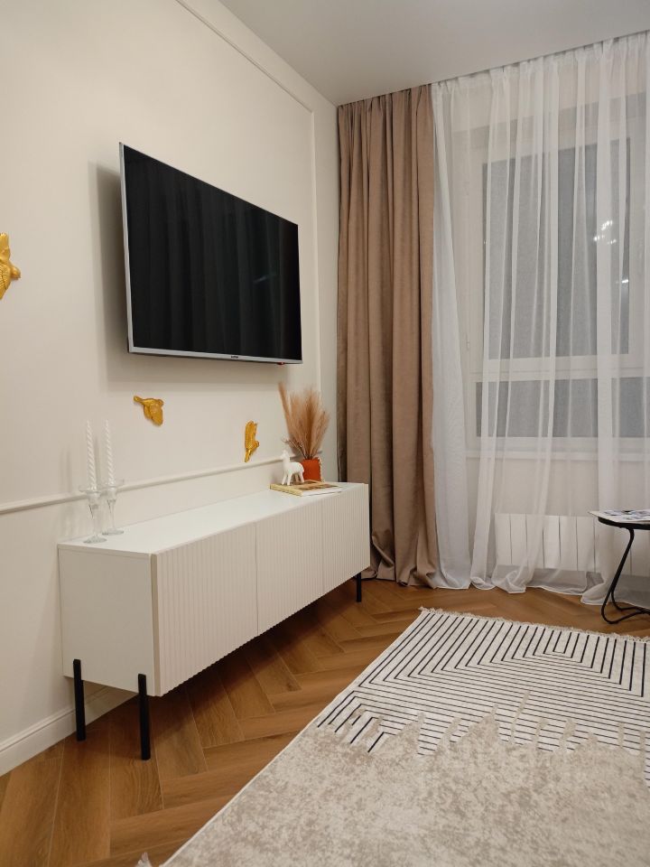 Евро двушка. Изолированная спальня с новой современной мебелью. Вместительный шкаф купэ на всю стену, двух спальная кровать с ортопедическим матрасом, дизайнерский зеркальный столик с зеркалом, пластиковые окна, замена всех коммуникаций на современные и новые технологии. Сплит система. Уютная кухня -гостинная со всей необходимой бытовой техникой ведущих мировых производителей, включая мелкую. диван раскладывается в полноценное спальное место.
