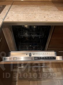 Есть всё необходимое для проживания: электроплита Индезит, вытяжка, холодильник и посудомоечная машина фирмы Электролюкс, стиральная машина LG, микроволновка, столы, стулья, шкафы с зеркалами, 2 дивана, лоджия.