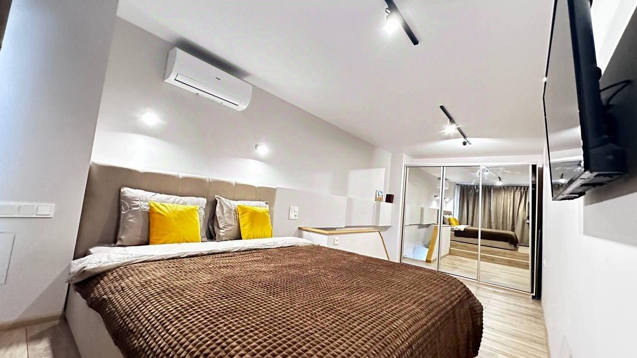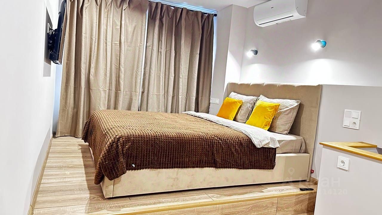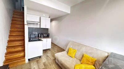 Апартаменты находятся на 11 этаже с окнами во двор. На первом этаже расположена кухонная зона и зона отдыха, совмещенный санузел с большой душевой. Второй этаж полностью перекрыт, с полноценной отдельной спальней и потолками 2.75 м. Апартаменты полностью оснащены всем необходимым для жизни: телевизор, интернет, кондиционер, стиральная машина, фен, гладильные принадлежности, постельное белье, полотенца, туалетные принадлежности, одноразовые тапочки, посуда для приготовления пищи. Кровать с новым матрасом премиум-класса. На этаже есть выход на общий балкон. На 1 этаже дома находится вендинговый кофейный аппарат.