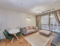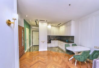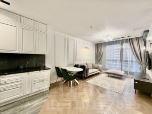 Сдаются роскошные апартаменты в ЖК Лайнер. Евродвушка с отдельной спальней. Выполнен дизайнерский ремонт в минималистичном стиле: сдержанная цветовая гамма, функциональная и удобная мебель, необходимая для комфортного проживания, бытовая техника, включая посудомоечную машину, духовой шкаф и СВЧ. Индукционная плита, холодильник, стиральная машина, кондиционеры, новый телевизор. Проведён интернет. В спальне новые кровать "Аскона" с подъемным механизмом и ортопедический матрас "Матрамакс" 180 см с разной жесткостью сторон; гардеробная зона с удобной системой хранения. Ванная комната, в числе прочего, оборудована бойлером. В прихожей вместительные встроенные шкафы. Панорамные окна выходят в тихий внутренний двор, где предусмотрена прогулочная зона свободная от автомобилей. Парковка осуществляется вдоль внешних сторон комплекса. Также имеется многоуровневая подземная парковка с возможностью арендовать машино-место.