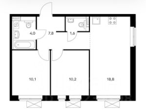 Планировка: 2 изолированные комнаты + просторная кухня-гостиная