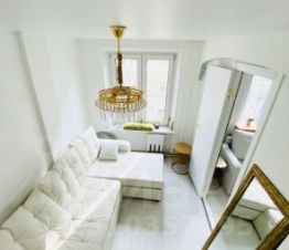 Светлая гостиная с компактной кухней, с панорамными окнами и видом в зеленый двор!