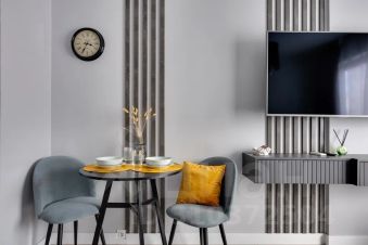 Уютная и стильная квартира с кондиционером, большой мягкой кроватью и панорамным видом из окна на 26 этаже в жк руставели, в 10 минутах пешком от метро дмитровская!