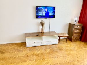 В квартире новая двуспальная кровать с ортопедическим матрасом, раскладной диван, шкаф для вещей , ЖК телевизор, безлимитный высокоскоростной Wi-Fi и цифровое телевидение, кондиционер. Встроенный кухонный гарнитур, плита, холодильник, микроволновка, электрический чайник, вся необходимая посуда для приготовления пищи, совмещенный санузел, машинка автомат, сушка для белья, гладильная доска, фен.
