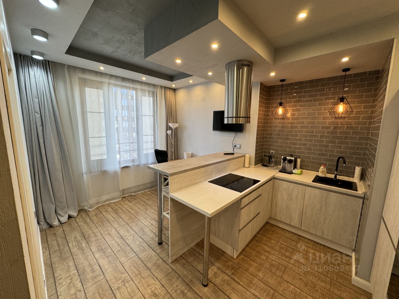 Очень удобная планировка с кухней, спальней, гардеробной и еще одной комнатой.