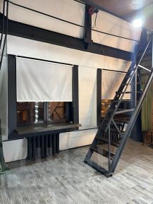 Высокие потолки, удобное функциональное пространство, много света, естественного и электрического. А еще подъемная лестница - сделанная специально под заказ, которая позволит, при необходимости, полностью отделить второй этаж.