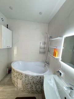 Квартира с дизайнерским ремонтом, полностью готова к комфортному проживанию. В наличии вся необходимая мебель на кухне и в комнате. Из техники есть холодильник, посудомоечная машина, телевизор и стиральная машина. В ванной комнате установлена ванна. Лоджия добавляет дополнительное пространство для отдыха или хранения.