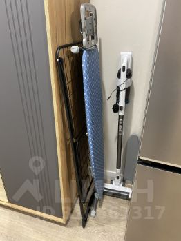 - удобный диван-кровать, два больших стола, вместимый шкаф в коридоре и стеллаж в комнате. Имеются кондиционер, холодильник и стиральная машинка, пылесос и утюг с гладильной доской