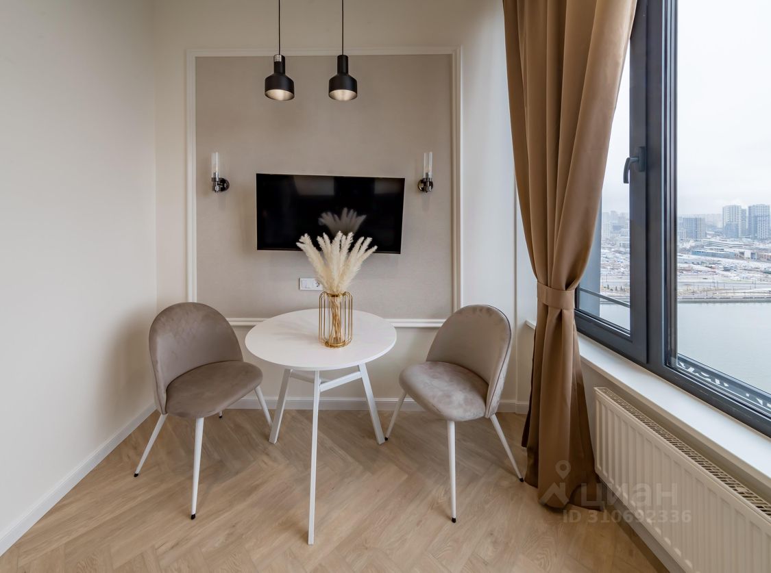Сдается видовая квартира-студия на 22 этаже в жилом комплексе бизнес-класса "Новоданиловская 8". Высокие потолки 3,5 метра и огромные панорамные окна с видом на реку.