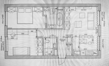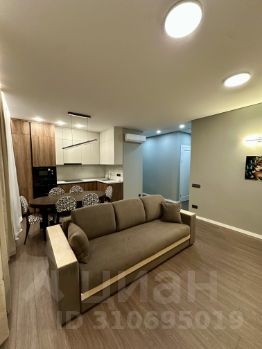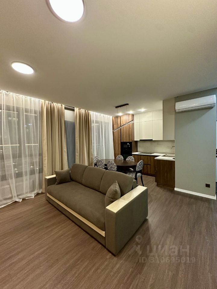 Большая кухня-гостиная (25м2), комнаты (детская-13м2+спальня-14м2)-изолированные. Мебель: прихожая, гостиная, детская, спальня.