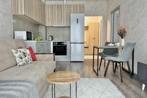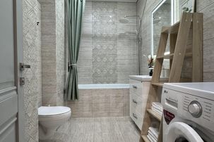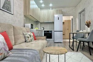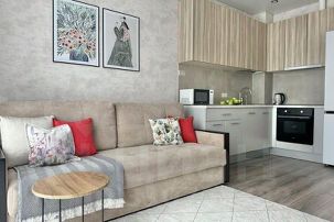 Просторная кровать шириной 160 см с ортопедическим матрасом, удобный и современный диван. Для каждого гостя предусмотрено качественное постельное белье (страйп-сатин), подушка и отдельное одеяло, комплект полотенец и средства гигиены.