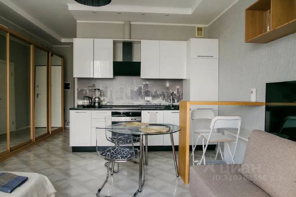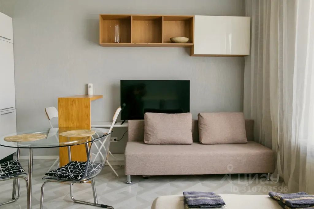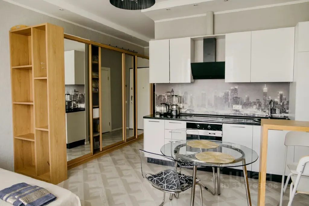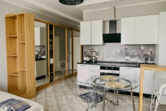 Студия расположена в современном, многофункциональном Жилом комплексе Фили Град, в окружении кафе, ресторанов. В доме есть Торговый центр и фитнес-клуб, подземный паркинг.
