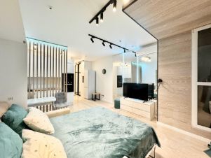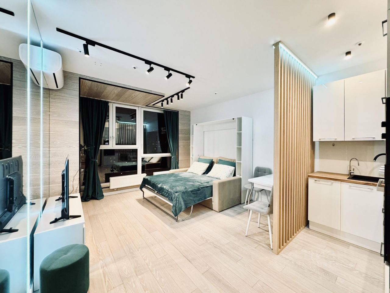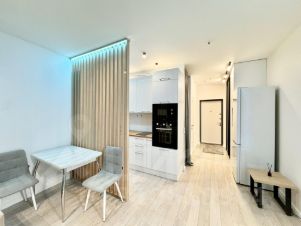 Квартира ранее никогда не сдавалась! Новый ремонт! Очень красивая квартира, меблирована всем необходимым для комфортной жизни: шкаф-трансформер (из него на диван опускается уже заправленная полноценная кровать с удобным ортопедическим матрасом (что очень удобно, в реалиях студии), большая гардеробная комната, зона кухни за декоративной реечной перегородкой, посудомоечная и стиральная машинки, питьевой кран (с фильтром), большой зеркальный шкаф-купе в коридоре, телевизор. Красивый вид из окон, на город. Очень теплая и уютная квартира. Сдается ТОЛЬКО на долгий срок (от 11 мес), приличным и платежеспособным людям. оперативно покажем Вам квартиру, звоните!
