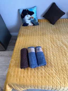 Чистое постельное бельё, полотенце, посуда.