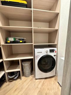 В кладовой находится стиральная машинка с сушкой, водонагреватель.