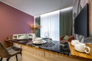 - Панорамные виды на город и современный дизайнерский интерьер.
