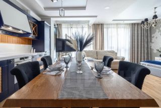 В апартаментах с комфортом смогут разместиться 6 гостей: в спальне находится кровать размера king size — 160х200, а в зоне кухни-гостиной — шикарный диван и кровать, премиальное постельное белье, мягкие подушки и воздушное одеяло — создающие атмосферу домашнего уюта. Полностью оборудованная кухня включает все необходимое: холодильник, варочную панель, духовой шкаф, посудомоечную машину, вытяжку, набор посуды и столовых принадлежностей — чтобы вы могли готовить и наслаждаться едой без лишних хлопот.