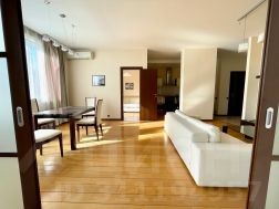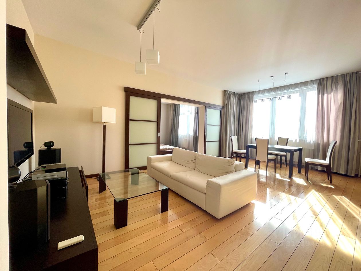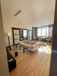 Сдается на длительный срок 2-комнатная квартира в ЖК Гранд Парк. Окна на сторону Березовой рощи (окна не во двор). В квартире выполнена дорогая качественная отделка в современном стиле с использованием натуральных материалов. Мебель и техника ведущих мировых фабрик. Планировкой предусмотрены 3 комнаты: - просторная кухня-гостиная-столовая, спальня с гардеробной и собственным санузлом - небольшой кабинет с диван-кроватью В квартире два санузла, гостевой со стиральной машиной расположен при входе в квартиру, основной в спальне. В спальне организована просторная гардеробная с различными вариациями для хранения вещей. В квартире предусмотрена система теплых полов.