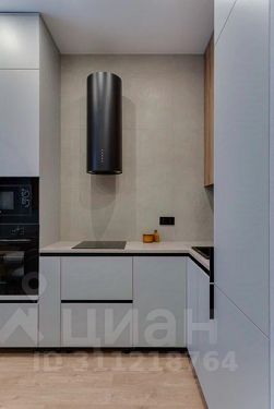 Бытовая техника: стиральная машинка, варочная панель, кондиционер, чайник, полноразмерный холодильник, телевизор, посудомоечная машина, встроенные духовка и микроволновка.