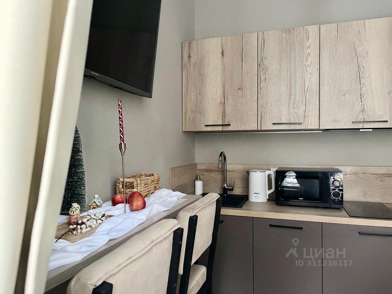 - Оборудованная кухня: плита, холодильник, посуда, столовые приборы