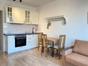 Студия площадью 22 квадратных метра (это одна из самых больших студий в домах этого проекта), очень удачный форм-фактор (не узкая). Большая регулируемая батарея отопления, кондиционер с обогревом (обогрев не нужен, но на всякий есть), 4-комфорочная индукционная плита и полноценная кухня, духовка, стиральная машина, душевая кабина, двухкамерный холодильник nofrost. Стол и стулья, раскладываемый диван.
